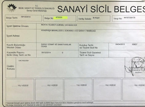 NOKTA CNC SANAYİ BAKANLIĞI KAYITLI BİR ŞİRKET OLUP